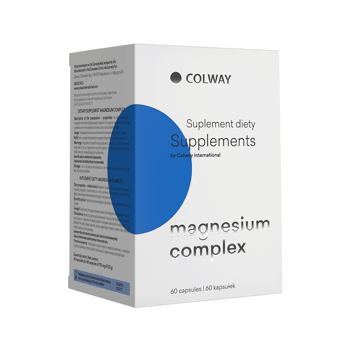 Magnesium Complex jest kompozycją trzech form magnezu o wysokiej przyswajalności - mleczan magnezu, cytrynian magnezu, diglicynian magnezu, wzbogaconych witaminą B₆, która ułatwia wchłanianie tego pierwiastka, jego transport do komórek organizmu i utrzymywanie jego wewnątrzkomórkowego zapasu. Intensywny tryb życia, wysiłek fizyczny, nieregularny sen, stres, alkohol oraz picie dużych ilości kawy zwiększają zapotrzebowanie na magnez. Magnesium Complex uzupełnia codzienną dietę w magnez, który jest jednym z najważniejszych mikroelementów decydujących o zachowaniu zdrowia. Magnez jest aktywatorem ponad 300 enzymów uczestniczących między innymi w metabolizmie węglowodanów i tłuszczów chroni mięsień sercowy przed niedokrwieniem i niedotlenieniem, przeciwdziała zaburzeniom rytmu serca, reguluje ciśnienie tętnicze, przez obniżenie poziomu cholesterolu we krwi zapobiega miażdżycy, a także stabilizuje działanie układu nerwowego, czego efektem jest działanie uspokajające i zwiększenie wydajności pracy naszego mózgu. Magnez jest również niezbędny do mineralizacji i rozwoju kości.