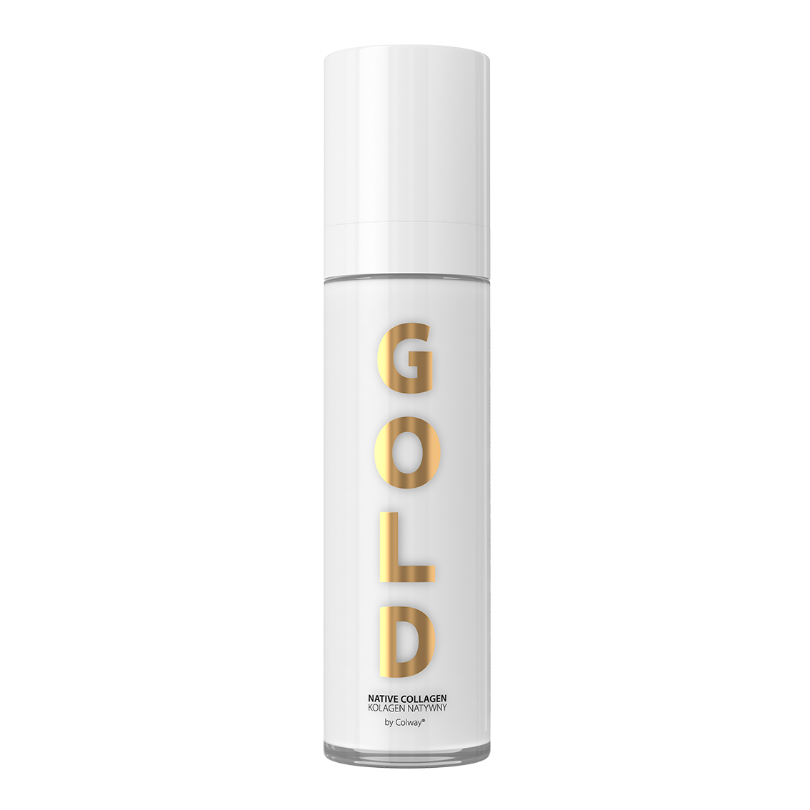 Kolagen Natywny Gold – to Kolagen Natywny Pure wzbogacony o substancje o właściwościach przeciwbakteryjnych, przeciwzapalnych, przeciwdrobno-ustrojowych, przeciwgrzybicznych i naprawczych. Wykazuje silne działanie przeciwstarzeniowe. Przeznaczony dla osób, które mają skórę problematyczną, nadwrażliwą, skłonną do przebarwień, borykającą się z liszajami, wypryskami. Zastosowane złoto koloidalne w synergii z peptydami kolagenu działa na zasadzie pompy jonowej: przyspiesza migrację składników aktywnych, wymianę mikroelementów, stymuluje proces oczyszczania organizmu drogą skórną. Zapobiega przebarwieniom, oddziałuje kojąco, antybakteryjnie, biostymulująco. Laktoferyna nadająca żelowi kolagenowemu lekki różowy odcień, to bioaktywne białko, działające przeciwzapalnie i przeciwtrądzikowo.