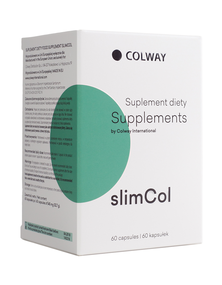 Suplement diety SlimCol posiada w swoim kompozycję ekstraktów roślinnych, dobranych tak, by wspomagać organizm podczas procesu odchudzania. Zawiera ekstrakt z Mumio, zwany „krwią gór”. To substancja, którą można znaleźć jedynie w kilku miejscach na ziemi, na dużych wysokościach – głównie w głębokich pieczarach gór Azji Środkowej, Tybetu czy Iranu . Mumio jest naturalną substancją o wyjątkowym składzie - działa odmładzająco, wspiera metabolizm tłuszczów i cukrów, przyczynia się do normalizacji masy ciała. Kompozycja zawiera kapsaicynę, która stymuluje proces utleniania węglowodanów oraz wpływa na utrzymanie prawidłowej masy ciała po odchudzaniu. Przeprowadzone przez naukowców z Uniwersytetu Wyoming badania jednoznacznie udowodniły, że substancja ta skutecznie przeciwdziała otyłości i spala kalorie. Jest antyoksydantem, więc dodatkowo chroni organizm przed działaniem wolnych rodników. Dodany do SlimCol karczoch wspiera utratę wagi oraz przyczynia się do utrzymania prawidłowego poziomu cholesterolu we krwi. Zastosowane w składzie imbir i gurmar pomagają kontrolować prawidłowy poziom cukru we krwi i ograniczają apetyt na słodycze. Znana i ceniona cykoria podróżnik wspomaga system detoksykacji organizmu oraz pomaga w procesie utraty wagi.