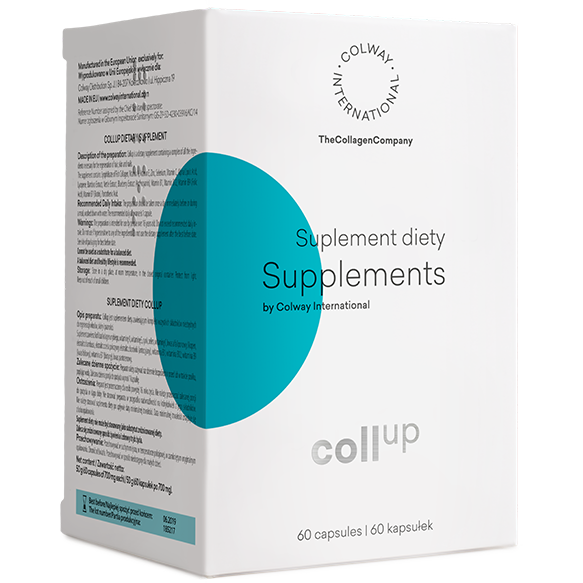 CollUp jest suplementem diety zawierającym kompleks wszystkich składników niezbędnych do regeneracji włosów, skóry i paznokci. Witaminy A oraz biotyna przyczyniają się do utrzymania prawidłowego stanu skóry i błon śluzowych. Cynk przyczynia się do prawidłowego metabolizmu witaminy A oraz do utrzymania prawidłowego stanu skóry i paznokci. Kwas foliowy przyczynia się do prawidłowej syntezy cysteiny, niezbędnego składnika keratyny. Cynk i selen przyczyniają się do utrzymania prawidłowego stanu skóry, paznokci i włosów.